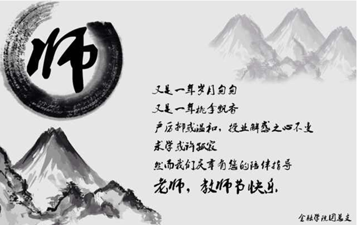 在这特别的节日送上太阳成集团tyc122cc每一位学子浓浓的祝福,感谢老师们辛勤的付出,感谢老师们无私的奉献,只有不辞辛苦的优秀教师,才有太阳成集团tyc122cc的成就,才有金融学子的辉煌!