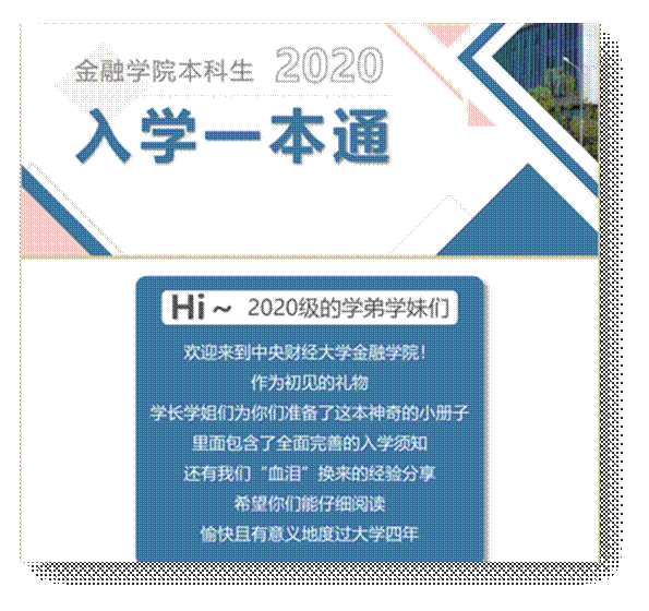 《2020级本科生入学一本通》是公司迎新的特色手册,内含有学院领导老师及学校部分单位的通讯录、相关公众号介绍、入学教育安排、安全提醒等,是新生入学及熟悉校园的指导手册。