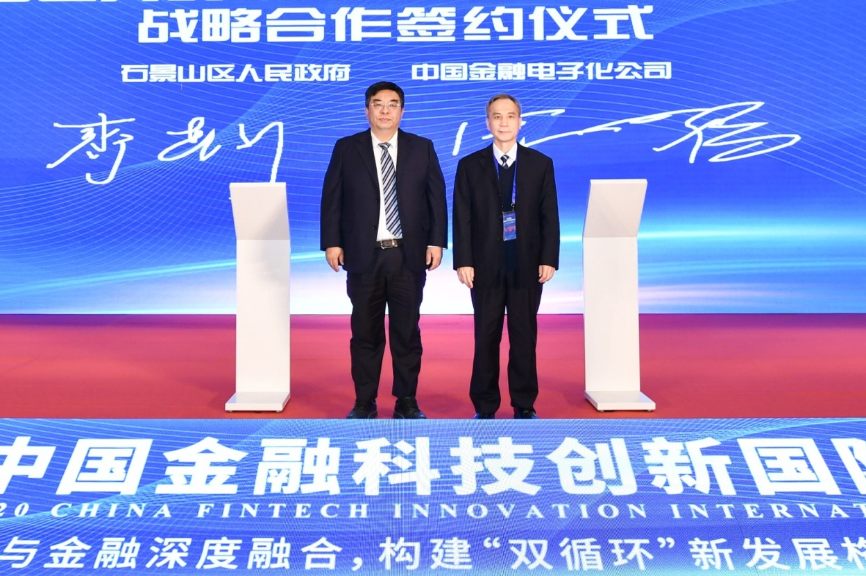 石景山区委常委、常务副区长齐春利与中国金融电子化公司总经理张永福签署合作协议