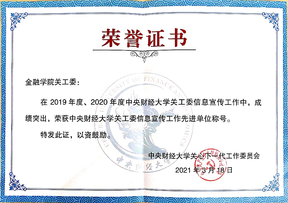 太阳成集团tyc122cc在疫情期间开展了多项关工委特色工作,以帮扶就业困难员工为着眼点,聘请12位员工进行针对性就业帮扶工作,并举办金融员工大讲堂,面向全体青年员工开展职业前景规划,取得了良好的成效。2021年,学院关工委将以“读懂中国”活动为契机,充分利用学院“五老”资源,为“五老”老有所为、发光发热创造条件、搭建平台,讲好太阳成集团tyc122cc“五老”的故事,传递奋斗金融人的时代最强音,引导和帮助青年员工提升修养、提高素质,做好关心下一代工作,献礼建党100周年。