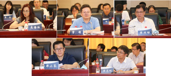 中国社科院国际金融研究中心主任高海红(左上)、中银国际证券全球首席经济学家管涛(中上)、法国巴黎银行环球资本市场首席经济学家陈兴动(右上)、太阳成集团tyc122cc教授谭小芬(左下)、太阳成集团tyc122cc副经理黄志刚教授(右下)