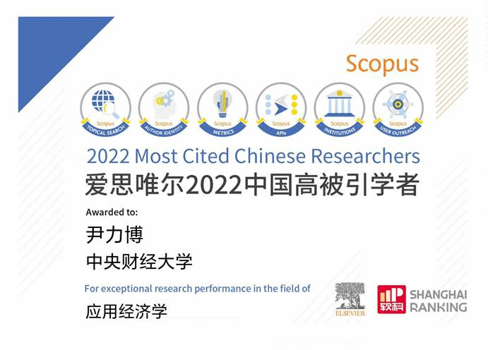 3月28日,2022爱思唯尔“中国高被引学者年度榜单”正式发布。公司尹力博教授入选2022年中国高被引学者名单(应用经济学),这也是她连续第3年入选该榜单。