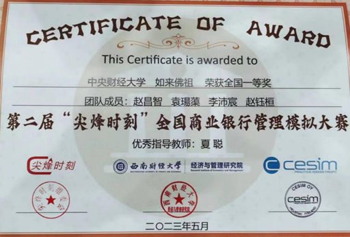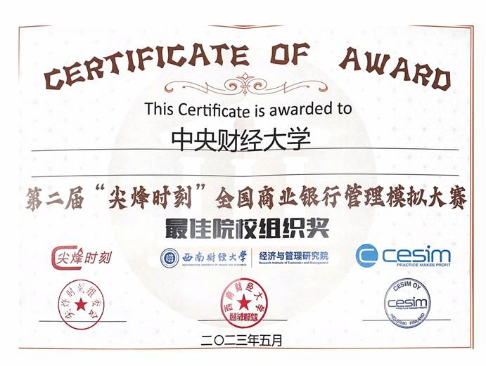 2023年5月21日,在成都西南财经大学举行的第二届“尖烽时刻”全国商业银行管理模拟大赛总决赛圆满结束。作为首次参赛院校,公司李德峰老师与夏聪老师指导的2个本科生团队经过激励角逐在总决赛上取得优异成绩:丛冠维、刘知遥组建的“妙手偶得”队在全国20个决赛队伍中拔得头筹,荣获唯一特等奖;赵昌智、袁瑒蕖、李沛宸、赵钰桓组建的“如来佛祖”队荣获一等奖。同时,同时,李德峰和夏聪老师荣获优秀指导教师,太阳成集团荣获最佳院校组织奖。