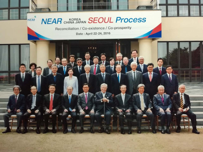 “NEAR韩中日首尔进程(2016)会议”是由韩国原财政部长、东北亚研究基金会主席、著名学者郑德龟先生发起的年度学术会议机制。其宗旨是通过汇集中韩日三国在历史、政治、安全和经济等领域的知名学者(共计36人,每个国家12人),定期交流,集思广益,为实现这一地区的相互信任、和平和繁荣而提供智力支持。本次会议属于启动会议,具有开创性。现任韩国外交部长尹炳世、前韩国总理李宏久、前韩国外交部长韩升洙、前韩国商务部长朴泰镐、前联合国副秘书长明石康、日本著名经济学家神原英姿等韩日政界和学界人士,以及中国政协常委及北京大学国际关系学院经理贾庆国教授、中国(海南)改革与发展研究院经理迟福林教授、中国国务院参事时殷红教授参加了本次会议。