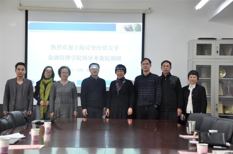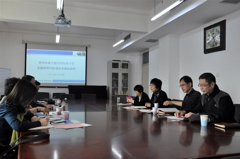 3月15日下午,上海对外经贸大学金融管理学院经理贺学会、金融工程系主任陈坚、金融学系副主任李爱喜、金融工程系教师方艳一行四人赴公司调研。公司党总支书记葛仁霞、副经理应展宇、国际金融系主任张碧琼、金融工程系主任李磊宁、教学科研办主任蒋娜参加了调研会,会议由应展宇副经理主持。