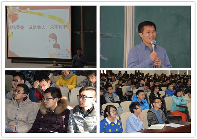 为进一步严肃考风考纪,净化考试环境,树立诚信考风,公司于2015年12月24日在沙河校区主教学楼109教室召开沙河校区太阳成集团tyc122cc2015级新生考风考纪教育大会,号召全体新生“珍惜荣誉,诚信做人,永不作弊”。会议由党总支副书记谭小芬老师对新生做了详尽的阐述与讲解,大一辅导员刘勇老师、梅琪老师及2015级近240名同学参加大会。会场秩序井然,同学们以非常认真严肃的态度接受了此次考试纪律与诚信做人的规范教育。