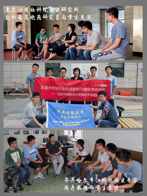 读万卷书不如行万里路。继往开来社会实践团队完成了题为《重走抗战路,传承爱国志,践行中国梦——以北京、黑龙江、河北、山东为地域寻觅抗战史根》的实践报告,报告374页,共计162,599字。还完成了48页的暑期社会实践宣传图片册、制作了覆盖9位学者、专家、教师、老兵的采访串烧视频一部和长达5分34秒的宣传总结视频一部,实践成果丰硕。另外,团队实践也得到了各级媒体的极大关注。据不完全统计,团队社会实践被《黑龙江日报》、《黑龙江经济报》、《齐齐哈尔日报》、《鹤城晚报》、《保定晚报》五家省市级纸媒报道共计7次,其中《齐齐哈尔日报》8月21日第2版整版报道了团队实践活动;人民网、光明网、中国文明网、大众网、中国网、中国甘肃网、在线老员工网等网媒报道30余次,其中人民网报道7次;齐齐哈尔电视台《直播鹤城》栏目新闻报道1次;《神马中财》等官方及团队微信平台宣传18次;微博平台宣传2次;同时团队实践每日在人民网“老员工论坛”进行播报,阅读量超16万,获赞数近10万,影响人数众多,产生了广泛而积极的社会影响。