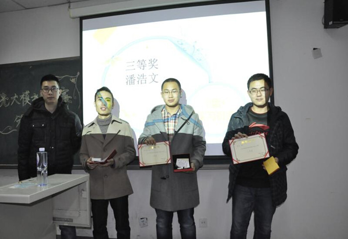 筹备比赛之初,作为主办方的我们与光大方面进行了愉快友好的沟通,就比赛细则达成共识。紧接着开展积极的宣传工作,通过宣传单和海报等多种形式进行有效宣传。并于2014年10月22号开始进行短信和网络报名。10月27日大赛如期举办,比赛期间成功利用同花顺模拟交易系统作为此次模拟炒股大赛的平台,并为不了解同花顺软件的同学发了电子版的参赛手册,选手按照相关指导开始虚拟炒股竞赛。炒股阶段结束后,统计各位参赛选手的收益率,进行排名并给予阶段性奖励。12月3日光大证券权威面试官进行现场模拟面试,评选出进入光大实习的优秀选手。激烈比拼之后,李浩伟同学凭借对股市过人的把握获得了第一名,曾诚,潘浩文同学分列二、三名。最终在11月26日晚,举办了隆重的颁奖典礼。本次的颁奖典礼还特别邀请到了光大证券市场销售部的经理顾轩先生为我们激烈的比赛进行了总结。在短暂的合影留念之后,一个多小时的颁奖典礼在掌声中落下了帷幕。