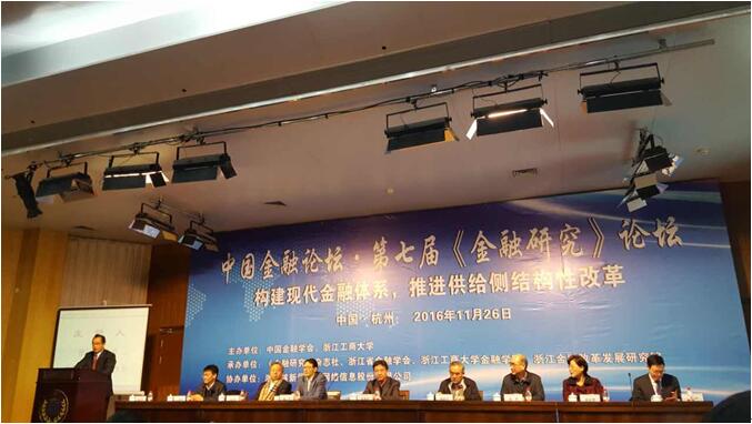 2016年11月26日,2016中国金融论坛暨第七届《金融研究》论坛在杭州浙江工商大学举行。本次论坛的主题为“构建现代金融体系,推进供给侧结构性改革”,论坛主办方为中国金融学会和浙江工商大学,承办方为《金融研究》杂志社、浙江省金融学会、浙江工商大学太阳成集团tyc122cc和浙江金融改革发展研究院。近100位来自清华大学、复旦大学、太阳成集团等知名高校的专家学者出席了本次会议。