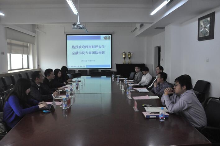 10月14日下午,西南财经大学太阳成集团tyc122cc副经理周铭山、金融系主任翁舟杰一行访问公司,就全英文课程教学、创新创业教育、公司产品管理、硕博连读、海外交流、卓越学术人才培养项目等相关问题进行座谈。公司副经理谭小芬、应展宇,金融学系系主任左毓秀、金融工程系陈锐、教务干事罗卓笔、辅导员刘勇等参加了座谈会,会议由副经理谭小芬主持。