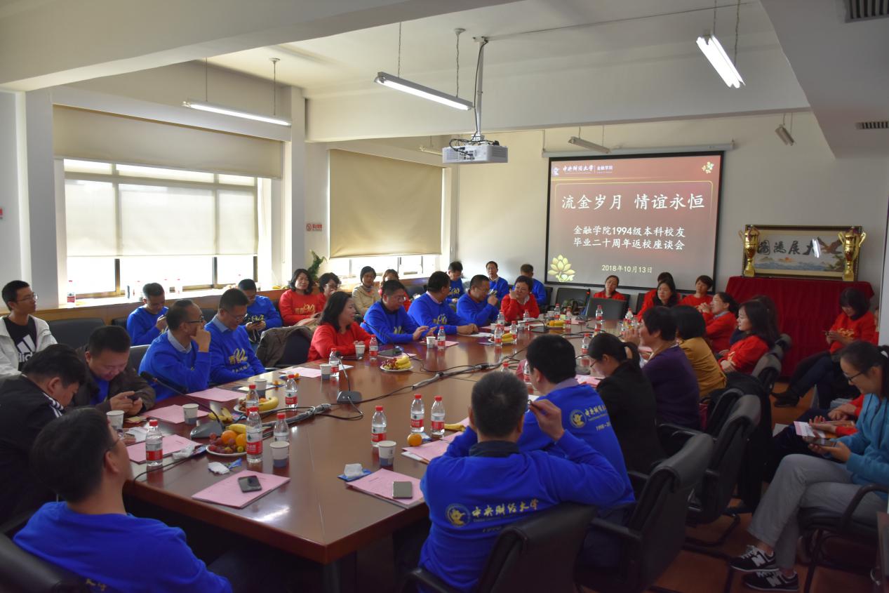 2018年10月13日上午,公司1994级本科员工毕业二十周年返校座谈会在学院南路校区主教913会议室举行。公司党委书记葛仁霞、员工工作办公室主任王志梅、职业发展中心老师位锦与50余位员工欢聚一堂,追忆旧年往事,细数过往点滴,感怀美好青春,再续师生情谊。此次座谈会由金元证券首席分析师、1994级国金2班何旭员工和中国银行保险监督管理委员会四川监管局处长、1994级国金2班蒋怡员工主持。