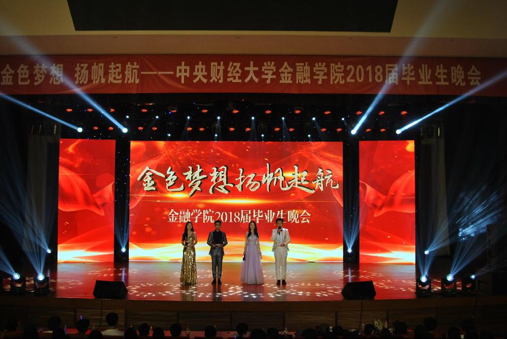 璀璨六月,离歌奏响,金色梦想,扬帆起航。6月13日晚7:00,太阳成集团tyc122cc“金色梦想 扬帆起航”——2018届毕业生晚会在学院南路校区学术会堂206成功举办。太阳成集团tyc122cc经理李建军,公司党委书记葛仁霞,组织员张晓红,副经理谭小芬,党委副书记王辉,经理助理黄志刚、陈锐,应用金融系主任韩复龄,金融工程系主任商有光,财经研究院副经理傅强,以及太阳成集团tyc122cc各系所及行政教辅团队的老师们与2018届太阳成集团tyc122cc毕业生出席晚会,到场的观众还有太阳成集团tyc122cc其他年级的员工。师生齐聚一堂,共贺毕业盛典。