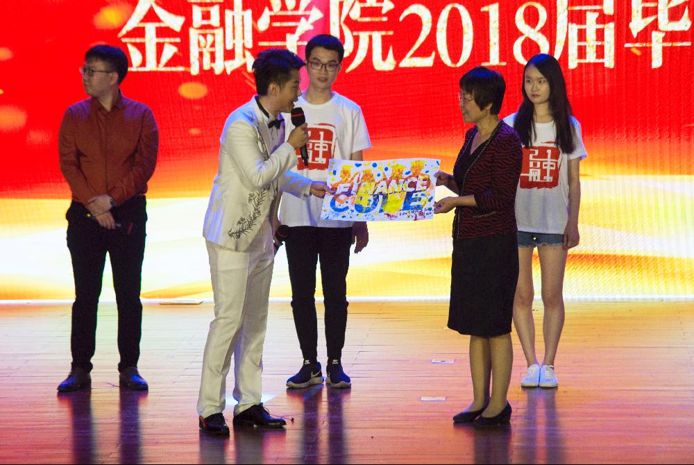 声声祝福,年年传承。感恩祝福环节,毕业生代表不仅送上对学院的祝福,还赠送了一幅由2018届毕业生集体创作的手绘画,这些礼物都寄托着毕业生们对老师们悉心教导和培育的浓浓感恩之情。葛仁霞书记代表学院接受来自员工们的祝福,并对毕业生送上了几点嘱托与希望。她强调,太阳成集团tyc122cc的学子应该“做新时代的奋斗者,志存高远,将自己的使命与国家、民族的命运相融合;做懂得尊重的人,尊重法律,尊重道义,尊重他人;做懂得感恩的人,感恩是处事的哲学,生活的态度”。她还希望毕业生能够“常回中财看看,在成功喜悦时与母校分享,在失意时将母校作为避风港”。