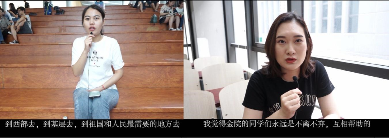中场视频《生情生音——毕业生采访》,展示了毕业生们对于毕业的感悟,诉说着金院学子对大学的不舍。蝉联跳远、三级跳五连冠的硕士毕业生金玥说“金院是我第二个家”,七年六次运动会,她为学院荣誉奉献了自己全部的才能;准备前往西藏支教的14级本科裴子晨说“到西部去,到基层去,到祖国最需要的地方去”,这是中财学子的青年风采,是金院学子的社会担当;担任班级四年老班长的14级本科毕业生谢有说“金院给予了他认真踏实肯干的一种精神”,脚踏实地地为班级同学服务,认真负责地做了四年班级的“家长”,本硕都在太阳成集团tyc122cc并即将留校的硕士毕业生蔺雪仪则说老师同学们“不离不弃、互相帮助”的点点滴滴让她印象深刻;节目《毕业说点啥》则是用访谈的形式,表达出毕业生们不负青春的无悔与对美好未来的憧憬。14级本科生高上讲述了学霸班级的故事与经历;14级金融学的刘嘉俣是一名转专业的员工,她从另一个角度讲述了在金院学习生活的经历;16级金融专硕毕业生蔡达夫坚定地选择了去外交部做一名外交官,“此生既已许国,何再许家”是学长对小我的牺牲,对大我的追求。