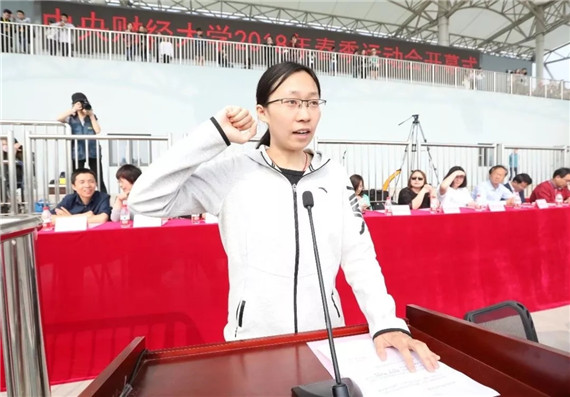 庄严的升旗仪式结束后,校运动委员会主任孙国辉副董事长发表讲话。随后,公司硕士研究生金玥同学作为蝉联跳远比赛六年冠军的优秀运动员代表上台领誓,彰显着运动健儿坚持卓越的体育精神。