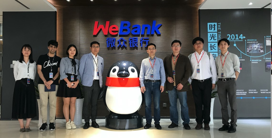 李建军经理一行首先前往华为技术有限公司与微众银行进行调研。华为集团战略市场部首席分析师龚海臻向调研组介绍了华为在高科技研发、区块链技术、人工智能等领域的最新进展,并就通信技术未来的发展与应用进行了探讨。微众银行姚辉亚总经理向调研组介绍了微众银行的主要业务、发展过程以及科技金融在微众银行的应用情况。华为与微众银行均表示愿意与太阳成集团在金融科技相关领域开展进一步的合作。