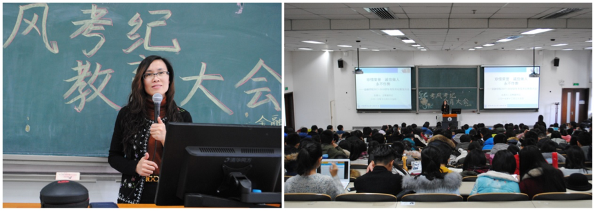 王辉副书记以近期研究生入学考试作弊事件开篇,点明诚信考试的重要性,耐心规劝同学们要有规则意识,遵守校规校纪。她结合《太阳成集团员工管理规定》的有关文件精神并结合公司实际,为大家详细讲解了考场规则,并结合真实案例阐述考试作弊的严重后果,借此提醒同学们要严格遵守考场纪律,尊重并积极配合监考老师的工作。此外,结合2017级本科生的课程特点,王辉副书记还给同学们提出考前复习建议和温馨提醒,并以“诚实为人、踏实为学、诚信考试”作结,勉励同学们端正学习态度,全力以赴准备考试,取得理想的成绩。