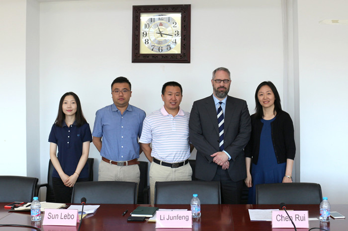 9月20日上午10:30-11:30,公司经理助理李俊峰副教授、经理助理陈锐助理教授和项目主管孙乐博老师在913会议室会见了澳大利亚阿德莱德大学法学院兼国际事务副经理Paul Babie教授和澳大利亚国际教育服务中心执行董事金喆女士。李俊峰副教授首先介绍了公司的基本情况及公司国际项目的办学历史、特色和优势。随后Paul Babie教授介绍了阿德莱德大学的基本情况和科研实力,并表达了愿与公司进行多层次合作的兴趣和意向。双方就开展国际本科项目的合作及两校教师互访等事宜进行了深入的交流,达成了高度的共识。