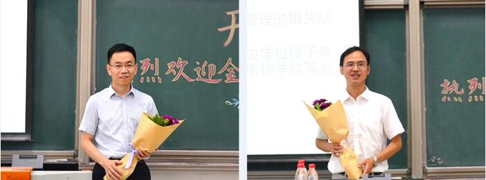 研究生在校生代表何山同学与大家交流了自己研究生阶段的学习感悟。他认为作为一名研究生,一是应该学会思考,从本科时期知识的接收者转变为知识的创造者;二是应该脚踏实地,严谨地对待自己的学术科研任务;三是要认真规划时间,处理好学习、考证和实习之间的时间安排。最后他还为大家介绍了学术研究的基本步骤,让新生们对学术科研过程有了初步了解。2017级新生代表潘柯晔同学分享了自己的感悟。他说,学院就像是一个温馨团结的家,爱护和关怀着每位同学的成长。针对研究生阶段的学习,他认为更高的平台意味着更高水平的竞争,意味着对自己更高水平的要求,因此要尽快静下心来,潜心学习。