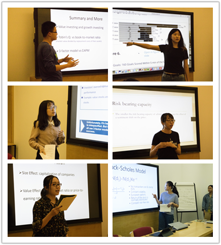 从8月14日开始的第二周课程主要围绕金融学相关理论展开,包括金融学资产定价模型和信托的相关知识。其中,前三天的课程由Dr. Charles Roddie主讲,他从金融市场的基础知识入手,深入浅出地为大家讲解了资本资产定价模型的推导原理及过程,金融衍生品中期货的交易方式和期权定价公式的推导过程及用法。接下来的两天时间里,法学院的Astron Douglas教授则为同学们带来了信托的相关知识。他指出,西方法律的核心是对于权力、义务以及所有权的定义,并引用法律经典案例为同学们指出了权利和义务在不同情境下的界定,让我们对于合同法有了基本的了解。此外,两位老师还分别组织同学们自主学习金融学相关论文并以小组为单位进行流动性溢价、共同基金等方面的案例分析和课堂展示,使同学们对于金融学专业以及法律等相关学科有了更全面的了解与认识,增强了理论联系实际的能力。