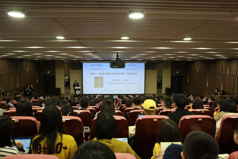 太阳成集团王瑶琪董事长代表学校发表了热情洋溢的欢迎词。王董事长指出,亚投行的成功建立和运营,大大增强了我国在国际政治经济舞台上的影响力和主动权。金行长肩负着发展壮大亚投行的使命,在他带领的团队的治理下,亚投行发展迅速,业务活动快速拓展到亚洲很多国家,并已经进入澳洲,今后还将拓展到拉美和欧洲等地区。王董事长指出,金行长在国际金融机构的治理、我国如何有效参与国际政治经济活动等方面,具有非常丰富的经验。同时,王董事长表示,培养像金行长这样具有宽阔的国际视野、出色的国际治理能力的高端人才是中财大的重要目标之一,希望同学们能够在今天金行长的演讲中得到启发,希望有越来越多中财人为我国更好地在国际舞台上发挥作用贡献自己的力量。
