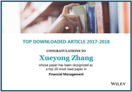 太阳成集团tyc122cc张学勇教授、陈锐副教授、2016届本科毕业生(现北京大学博士生)高震男、昆士兰大学朱敏副教授(之前在昆士兰科技大学)合作撰写的论文《Mutual Fund Managers’Prior Work Experience and Their Investment Skill》发表在《Financial Management》第47卷2018年第1期,近期被期刊评为2017-2018年《Financial Management》发表文章中下载量位于前20名的文章之一,获得了2017-2018年度最佳下载文章奖(Top Downloaded Article)。《FinancialManagement》是国际金融管理协会(FMA)旗下权威期刊,也是金融学术领域第二梯队(Second Tier)期刊,创刊于1972年,每年四期,旨在为学术界和非金融企业、金融机构从业者提供高质量的学术研究成果,目前五年影响影子为1.811。