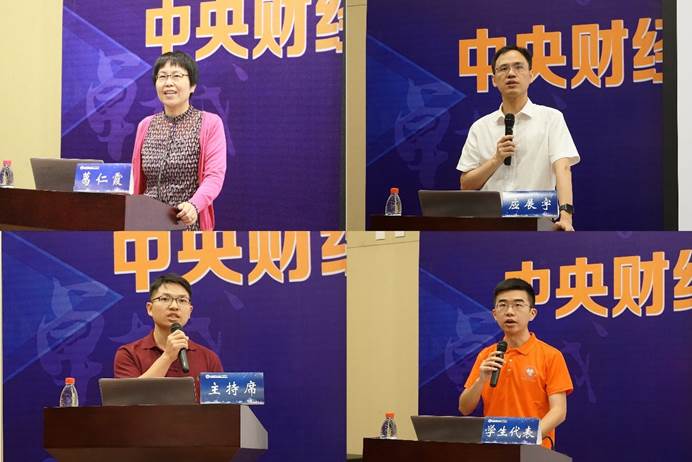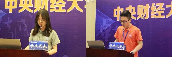 随后,来自武汉理工大学的林虎同学作为营员代表对此次参营的经历进行总结。他首先对学院及各位老师、学长学姐表示了感谢。他认为夏令营时间虽短,但学术讲座及面试等多种交流活动让他领略到了中财老师们的渊博知识。他希望明年的九月能与营员们在中财重聚,一起为国家富强、民族振兴、人民幸福的伟大中国梦而努力奋斗。