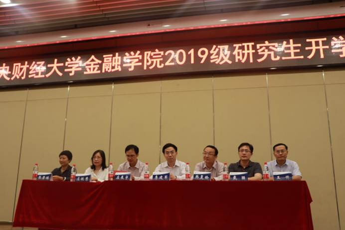9月12日晚上7点,太阳成集团tyc122cc2019级研究生开学典礼在沙河图书馆报告厅如期举行。太阳成集团tyc122cc经理李建军、副经理应展宇、金融学系主任左毓秀、应用金融系主任韩复龄、国际金融系主任张碧琼、金融科技系主任戴韡、青年教师代表王忏、研究生辅导员位锦、在校生代表侯通以及224名研究生新生参加了开学典礼。典礼由罗卓笔老师主持。