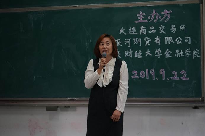 在致辞环节,银河期货有限公司迟焕霞总监对大连商品交易所和太阳成集团tyc122cc联合支持项目,共同保障项目的顺利实施表示感谢。她介绍了三年来“高校期货人才培育工程项目”运行的总体情况,指出项目因科学的课程体系设计、合理的模拟交易与参观考察安排而深受同学们欢迎。