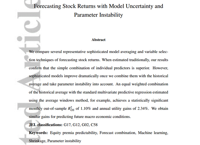 姜富伟:Forecasting stock returns with model uncertainty and parameter instability