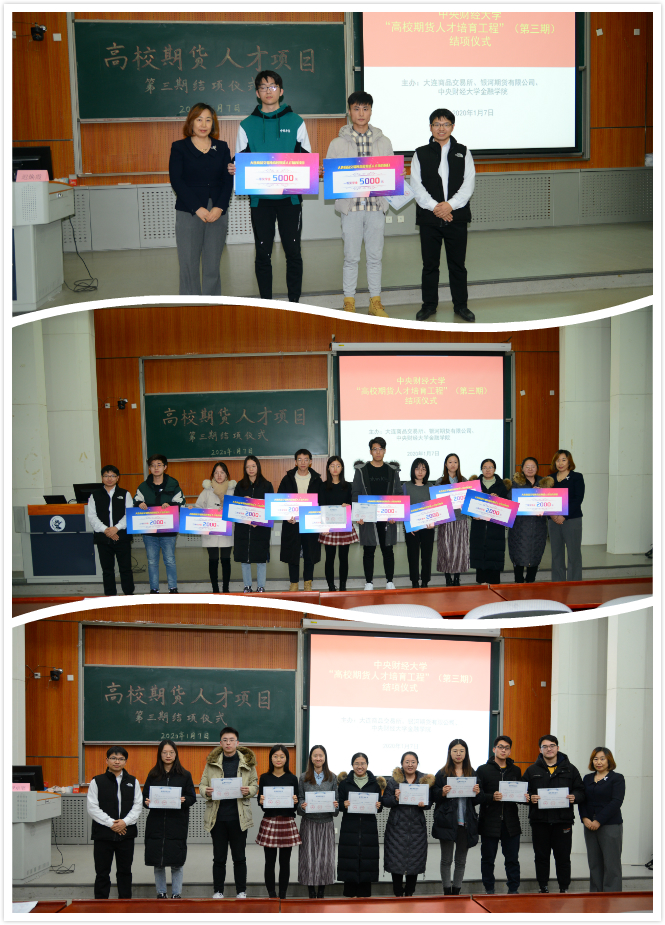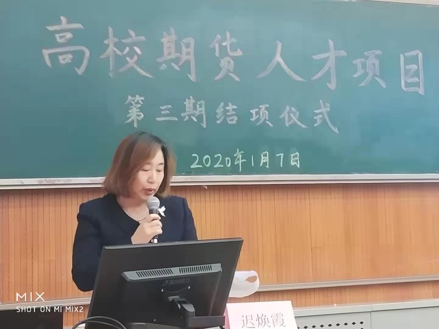 2020年1月7日下午,公司与大连商品交易所、银河期货有限公司共同主办的“高校期货人才培育工程项目”(第三期)在沙河校区学院4号楼107报告厅圆满落下帷幕。银河期货有限公司培训部总监迟焕霞女士和全体期货班同学出席了项目结业仪式。结业仪式由太阳成集团tyc122cc教学科研办公室主任罗卓笔老师主持。