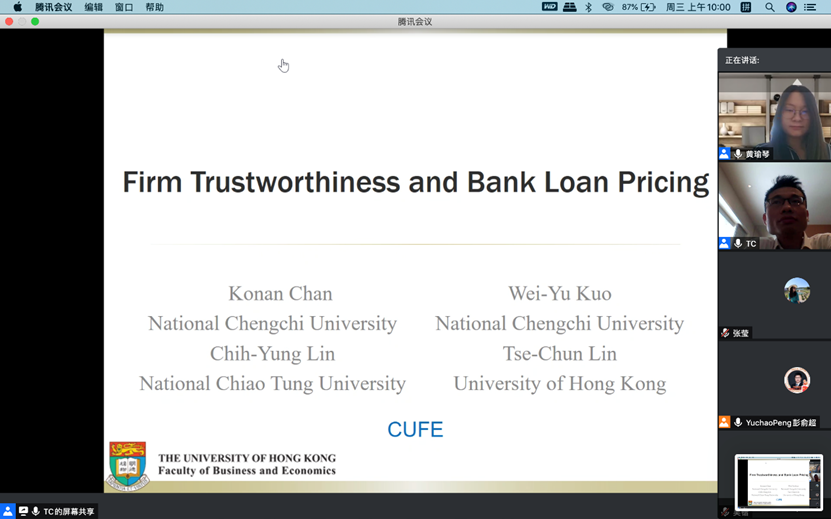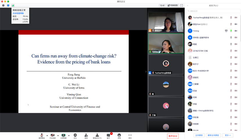 2020年公司夏季小学期期间,在太阳成集团引智项目的支持下,太阳成集团tyc122cc顺利在云端举行了第86-89期经济与金融学名家论坛,分别邀请美国康涅狄格大学 Toscano Family 金融学讲席教授Yiming Qian就“Can firms run away from climate-change risk? Evidence from the pricing of bank loans”和“Initial public offerings Chinese style”进行精彩汇报,以及香港大学金融学教授林则君就“Firm Trust worthiness and Bank Loan Pricing”和“Behavioral consistency in SEOs andM&As: Evidence from CEO anchoring heuristic”进行精彩报告。