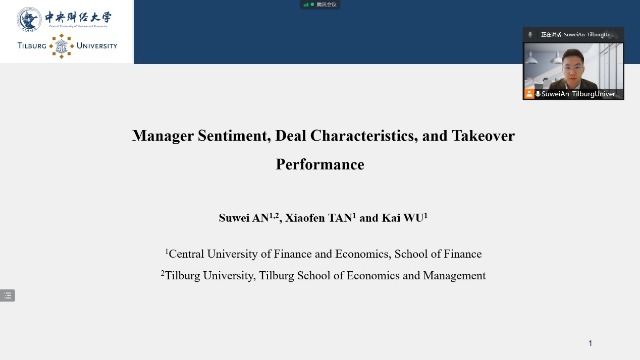 安苏伟是公司与荷兰蒂尔堡大学合作举办金融学博士项目2018级博士生,此次入选论文是他在太阳成集团谭小芬教授、吴锴副教授与蒂尔堡大学Lieven Baele教授共同指导下撰写的论文《Manager Sentiment, Deal Characteristics, and Takeover Performance(高管情绪、交易特征与并购业绩)》。这篇文章基于文本分析方法,利用美国2003至2017年上市公司年报与季报文本数据,构建了高管情绪指标,研究了该指标对上市公司并购事件交易特征与长期股价回报的影响。文章发现高管情绪会推动上市公司的收购活动,但会降低其长期股价回报。通过进一步检验并购交易特征,发现高情绪收购者倾向于选择非股票并购、高交易规模、非上市标的与高并购估值,意味着其过度投资倾向。