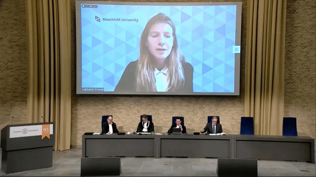 公开答辩仪式历时1.5小时,安苏伟首先对其博士论文进行了12分钟的公开介绍,博士委员会成员接着进行了48分钟的提问,随后仪仗官宣布公开答辩结束。博士委员会成员闭门审议后,决定授予安苏伟蒂尔堡大学博士学位,导师 Lieven Baele教授代表蒂尔堡大学正式宣布授予安苏伟博士学位,博士委员会成员与导师随后逐一对新晋博士表示祝贺,安苏伟博士最后发表感言,答辩仪式圆满结束。