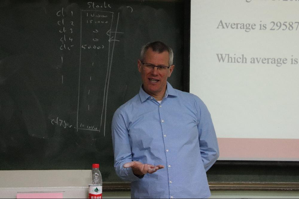 在为期五天的课程教学中,Herbert Hamers教授介绍了计量经济学的理论知识和计算机操作,帮助同学们将计量方法应用于他们的研究中。Herbert Hamers教授首先介绍了一些基本的数学概念,之后回顾了对收集的数据进行描述性统计的一些方法,包括单变量的平均数、中位数、方差等,以及两变量之间的协方差和相关系数。接着,教授以马科维茨的投资组合理论为例,引入了随机变量和分布。在讲解了正态分布和中心极限定理之后,课程讨论了置信区间和假设检验。最终,教授对回归分析进行了讲授。教授带领同学们使用简单线性回归的分析方法解读了资本资产定价模型,并在此基础上,讨论了更高级的回归分析方法,包括在回归方程中纳入虚拟变量、时间序列数据分析、逻辑回归模型、面板数据分析和蒙特卡洛模拟。
