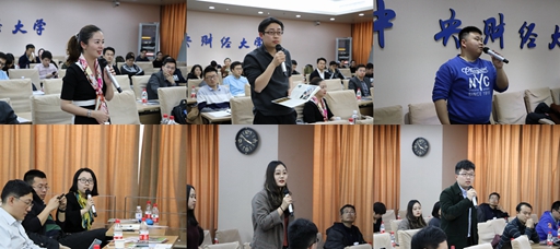 提问环节中,在场老师回答了有关申请及入学的各种问题。至此,2018年招生宣讲会圆满落幕。今年招生面试将于7月举行,报名通道于5月30日关闭,欢迎来电垂询: 010-62288134;13810826046张老师。招生简章网址:http://sf.cufe.edu.cn/jyjx/zcdepjrxbs/zsjz1/85626.htm
