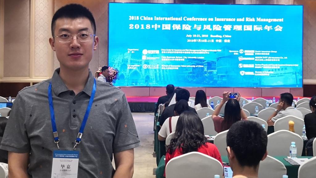 7月18日至7月21日期间,2018年中国保险与风险管理国际年会(China International Conference on Insurance and Risk Management 2018,简称CCIRM)在河北省保定市成功举办。本届会议由清华大学经济管理学院中国保险与风险研究中心和英国伦敦城市大学卡斯商学院共同主办,本届年会的共同主办单位为河北大学经济学院。该年会自2010年以来已经连续举办了8届。公司毕嘉同学的论文成功入选,受邀参加会议,并作论文宣讲。