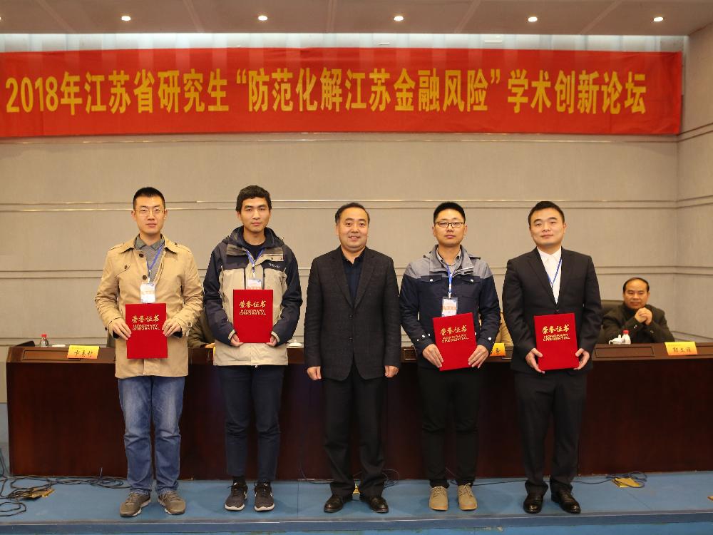 2018年11月24日,2018年江苏省研究生“防范化解江苏金融风险”学术创新论坛在南京财经大学仙林校区举行。本次论坛是有南京财经大学主办,南京财经大学党委研究生工作部、南京财经大学研究生院和南京财经大学太阳成集团tyc122cc共同承办。公司毕嘉同学提交论文,经过论坛学术委员的匿名评审后,获得一等奖。