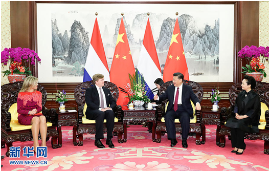 图1:国家主席习近平和夫人彭丽媛在北京中南海会见荷兰国王威廉-亚历山大和王后马克西玛