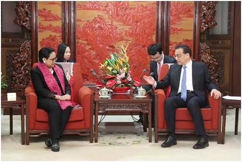 图2:李克强会见印度尼西亚外长蕾特诺。